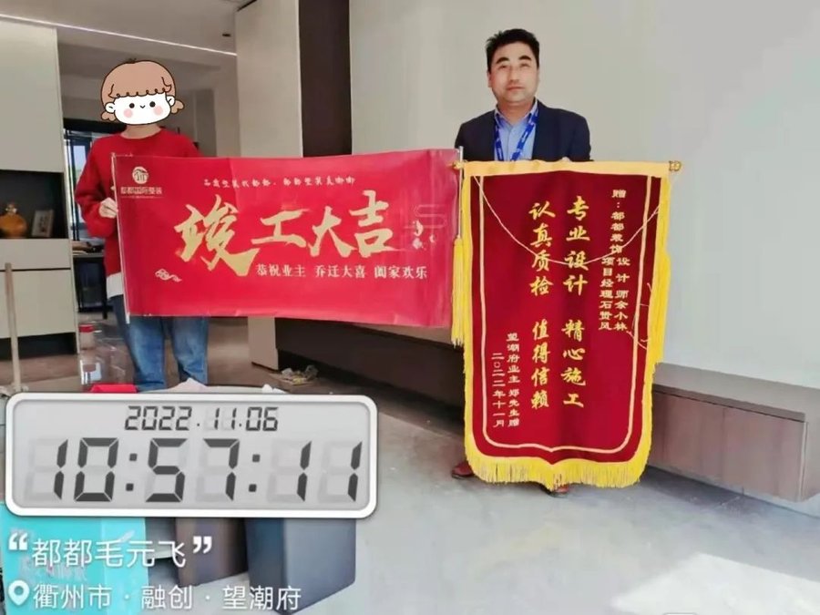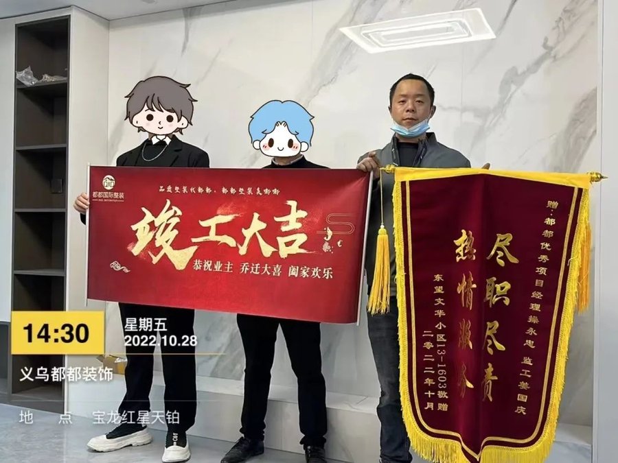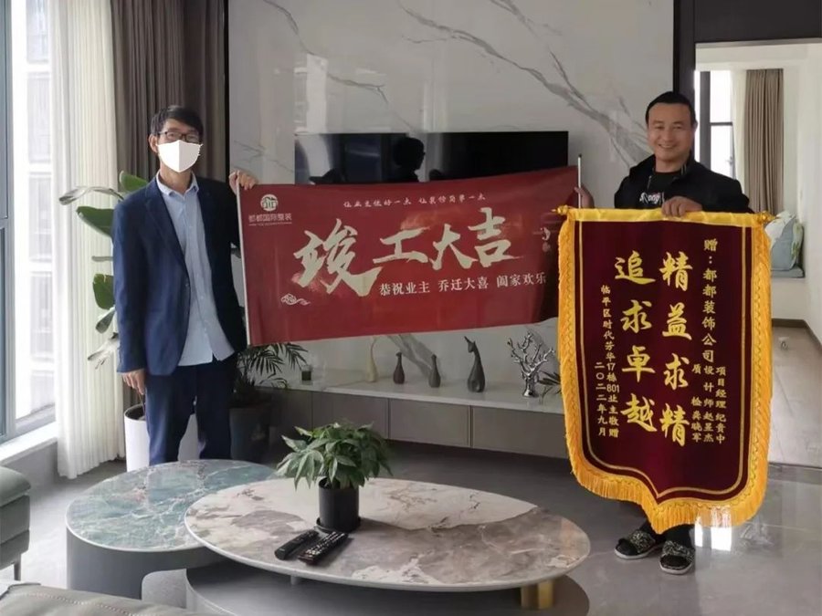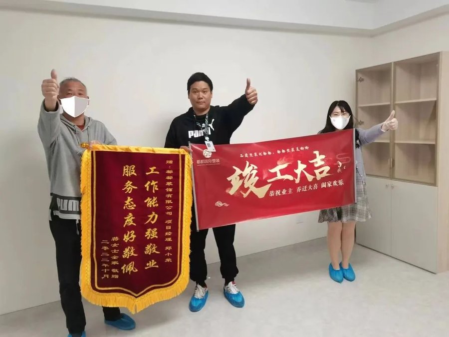 都都装饰收到的锦旗已经挂满了满满当当一整面墙,收到的称赞更是不计其数,但我们仍然为客户的每一次认可而心动。