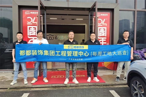 本周五阴雨连绵,作为施工品质的重要保障环节,都都装饰巡检小队准时集合,本周的常态化巡检工作依然有序展开。