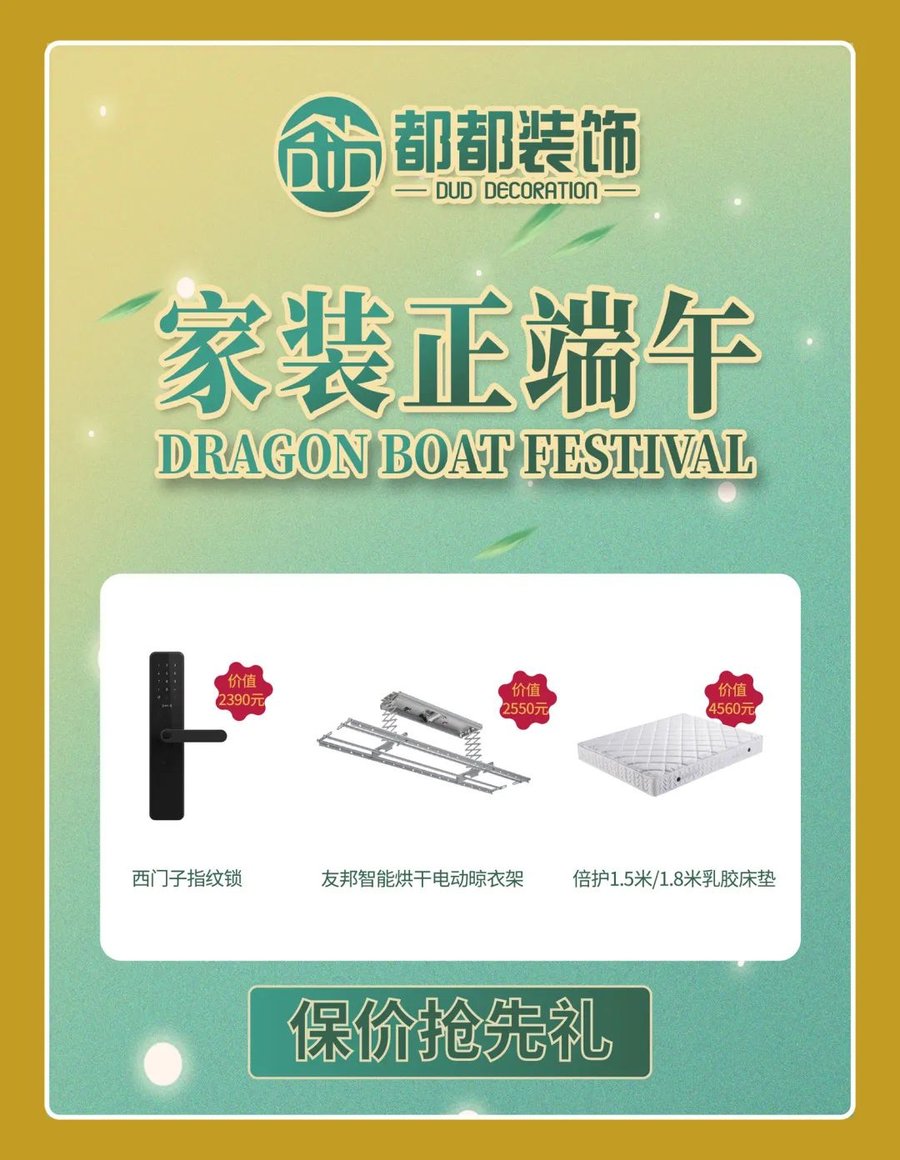正值所有装修原材料涨价之际,都都装饰为业主们制定了优惠政策,推出“家装正端午”活动,保价抢先享,立省6000元!