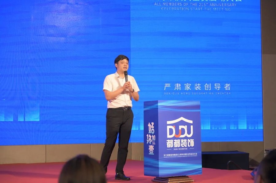 董事长都宜贵先生上台致辞。回顾过去,各位都都的家人们风雨同舟,砥砺前行,董事长对都都家人们的陪伴表示感恩。针对接下来的21周年庆典活动,董事长也为大家打气加油,慷慨激昂的致辞感染了现场的每一位家人!