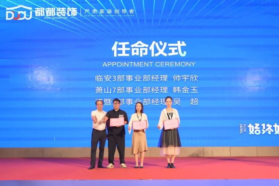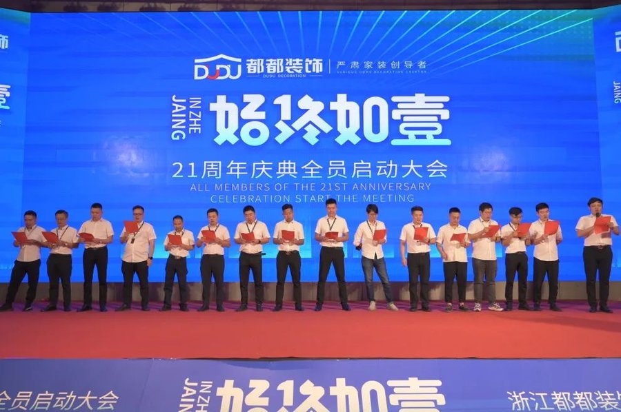 全体起立,诵读企业“四大心态”。接人待事时刻保持谦虚,沉着冷静,保持信心和冲劲,是每一个都都人从进入企业就开始学习并保持的精神。在一片诵读声中,浙江都都装饰集团21周年庆典全员启动会,正式开始!