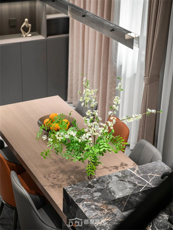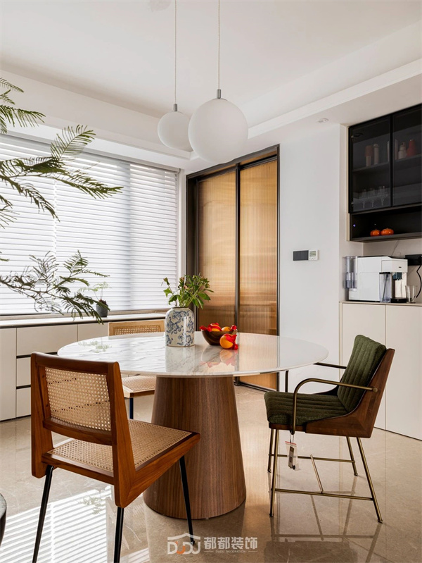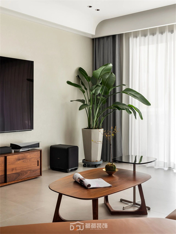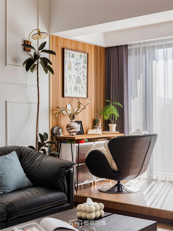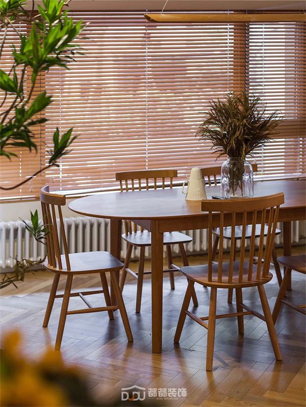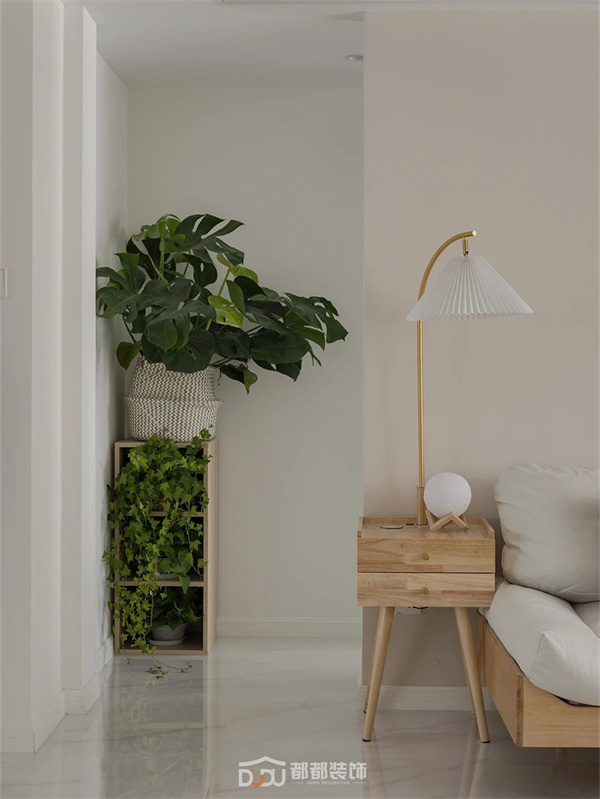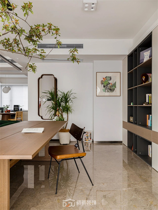 原木的温润浸透绿植的活泼,两者之间仿佛有种天生的吸引力,最终营造出自然又生动的空间秩序,萦绕质朴放松的氛围感。