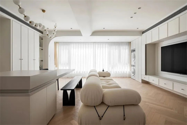 配色比较单一这种情况,很可能会发生在这两年比价流行的奶油风的装修上,因为追求极致的干净通透,很多人在整个空间只选用一种或两种色彩。 但过少的颜色使用会让空间显得比较单调,缺少空间层次感和丰富感,给人的观感就会像廉价出租屋。