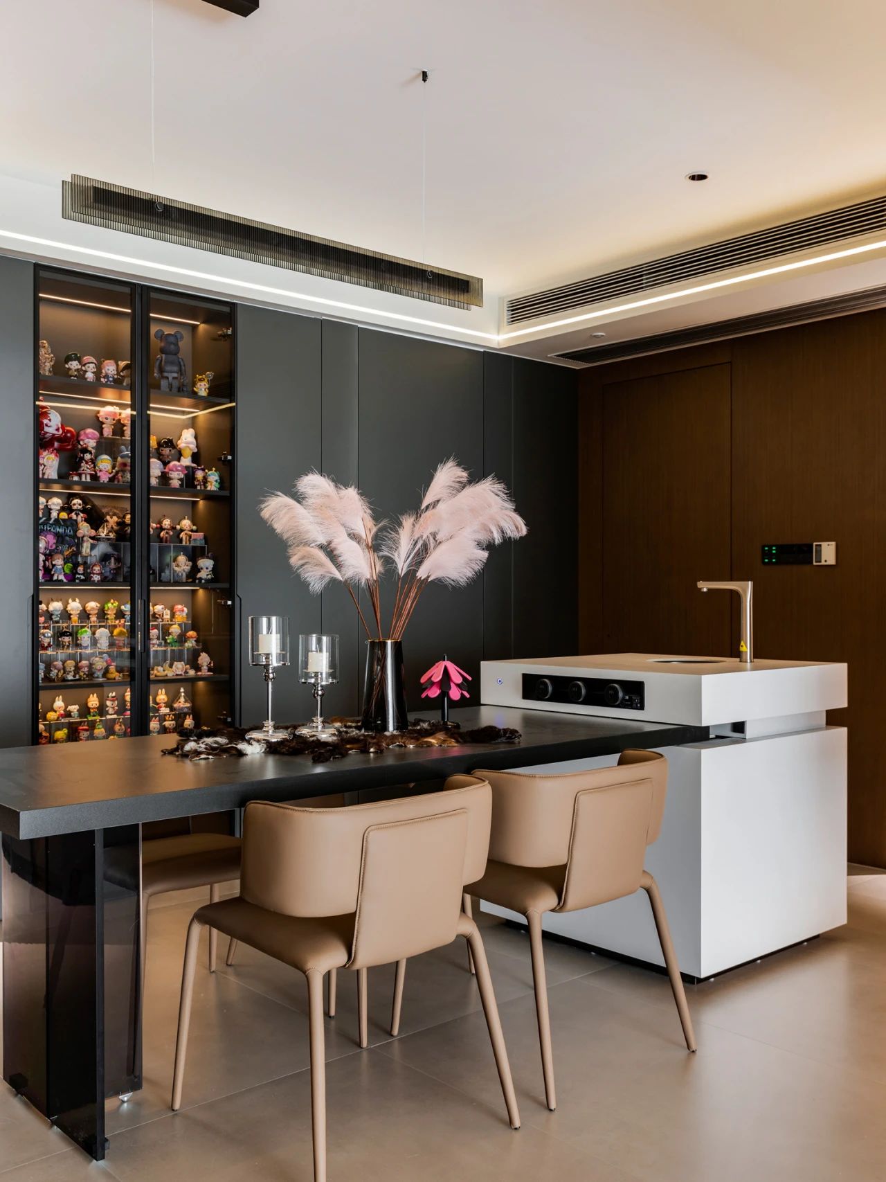 部分人也会在装修时专门留出一间屋子用来收藏和展示自己的兴趣爱好,提前良好尺寸做定制柜,分门别类去展示。