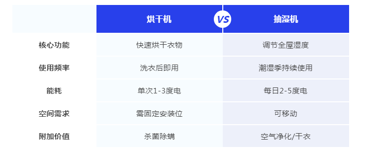 大家在选择之前可以先对家庭需求做出评估,再去根据生活需求去选择,你家选择烘干机还是抽湿机呢?评论区留言一起聊一聊吧~