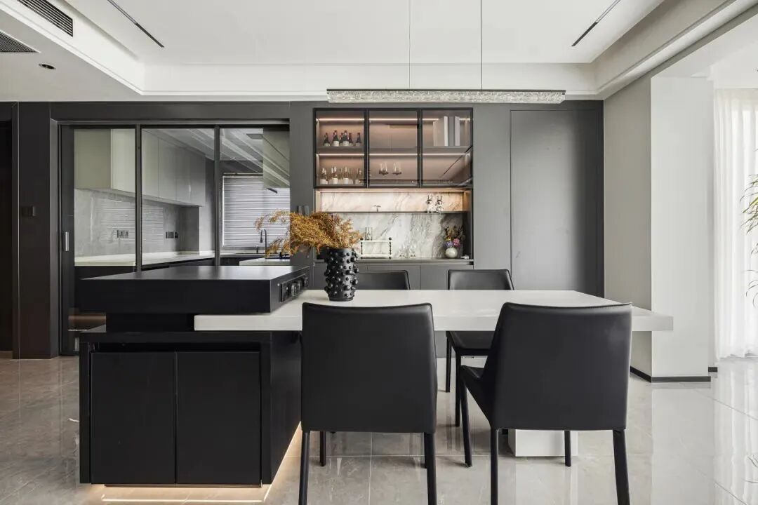 餐岛一体化打破了传统餐厅和厨房的空间界限,岛台既可以作为厨房烹饪操作区的延伸,又能在就餐时成为餐桌的一部分。