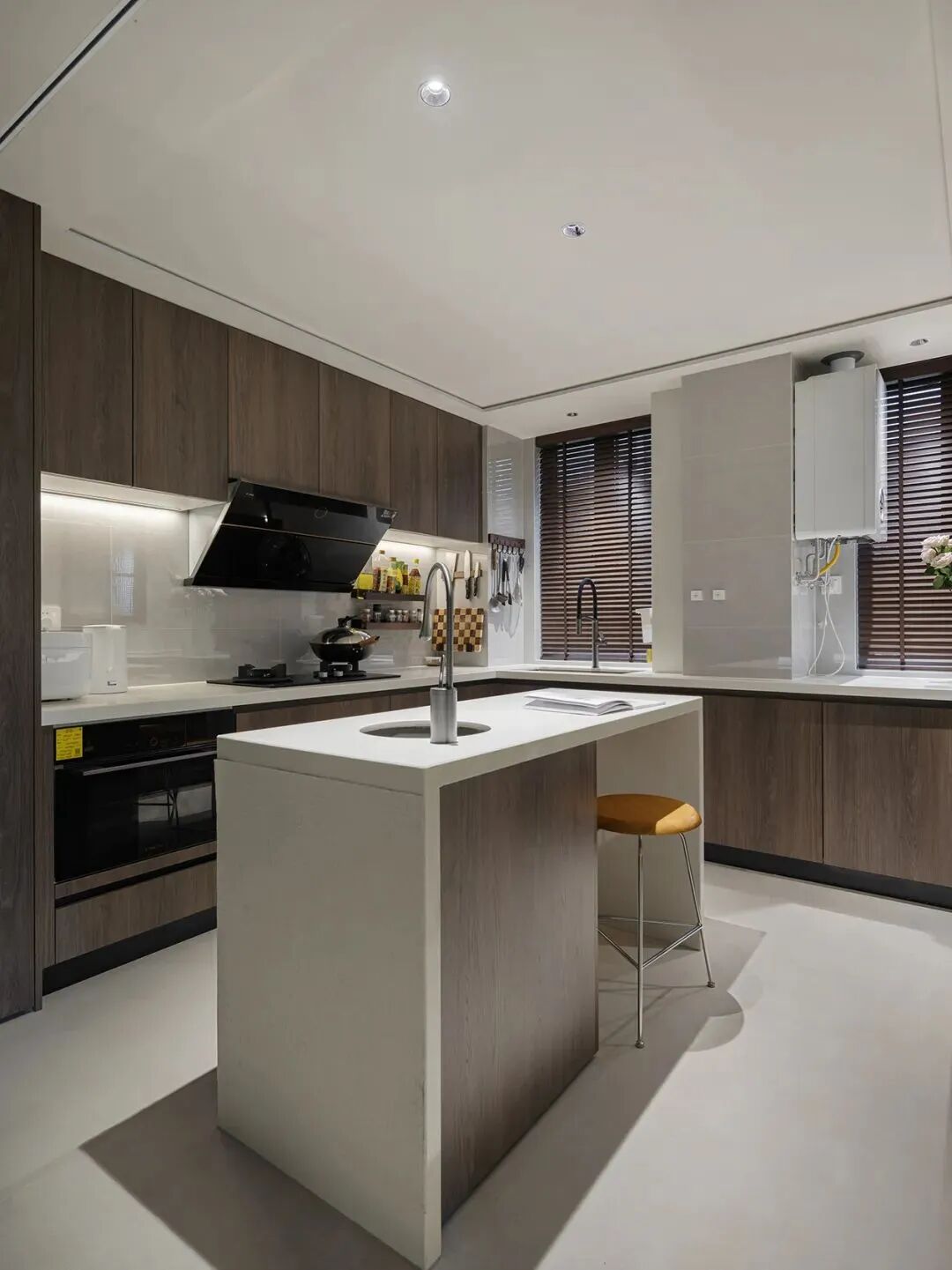 另外建议在操作台上方、橱柜下方嵌入灯线,这样可以避免身体或橱柜遮挡光线,切洗操作更方便。