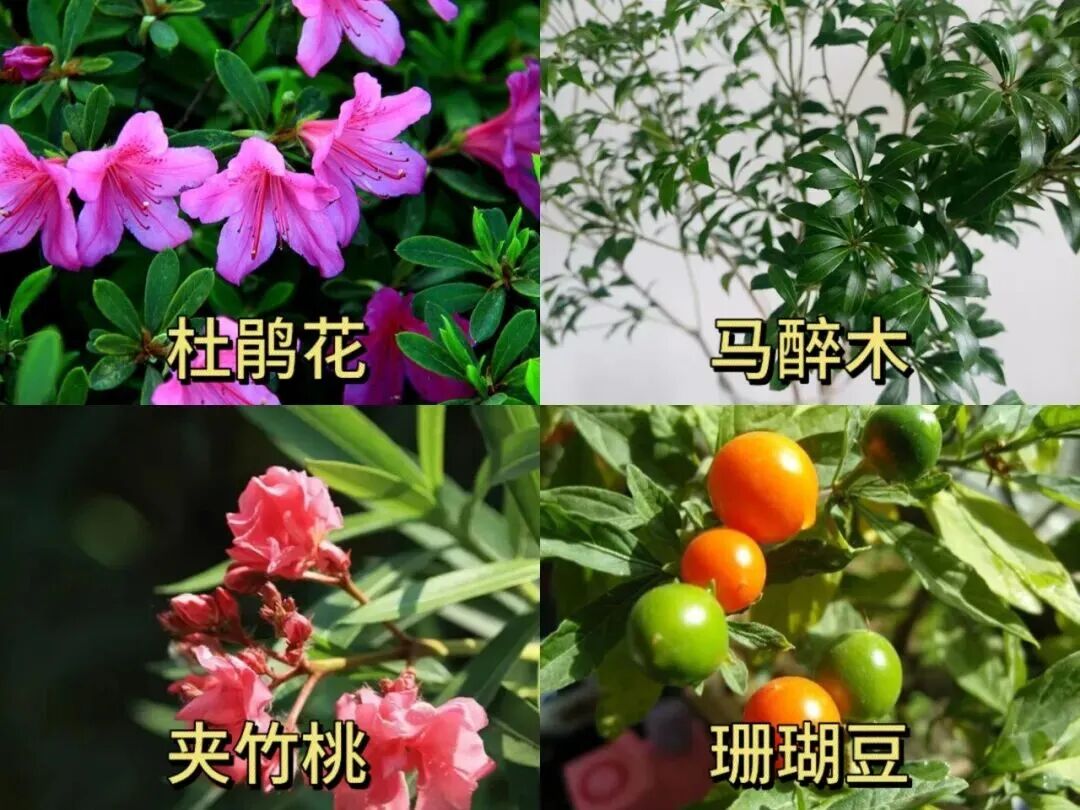 杜鹃花、马醉木、夹竹桃、珊瑚豆
